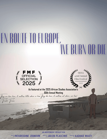 En Route to Europe, We Burn or Die weaves together the stories of individuals who are navigating precarity amid deadly border control mechanisms across Africa and the Mediterranean Sea. Through interviews in and around Zarzis, the film explores the journeys, motivations and opinions of African migrants – Tunisian and nationals of other countries – while exposing the neoliberal dispossessive structures that make their travels so dangerous. The film challenges the viewer to meet migrants as peers and to challenge the impacts of European policy on their lives.